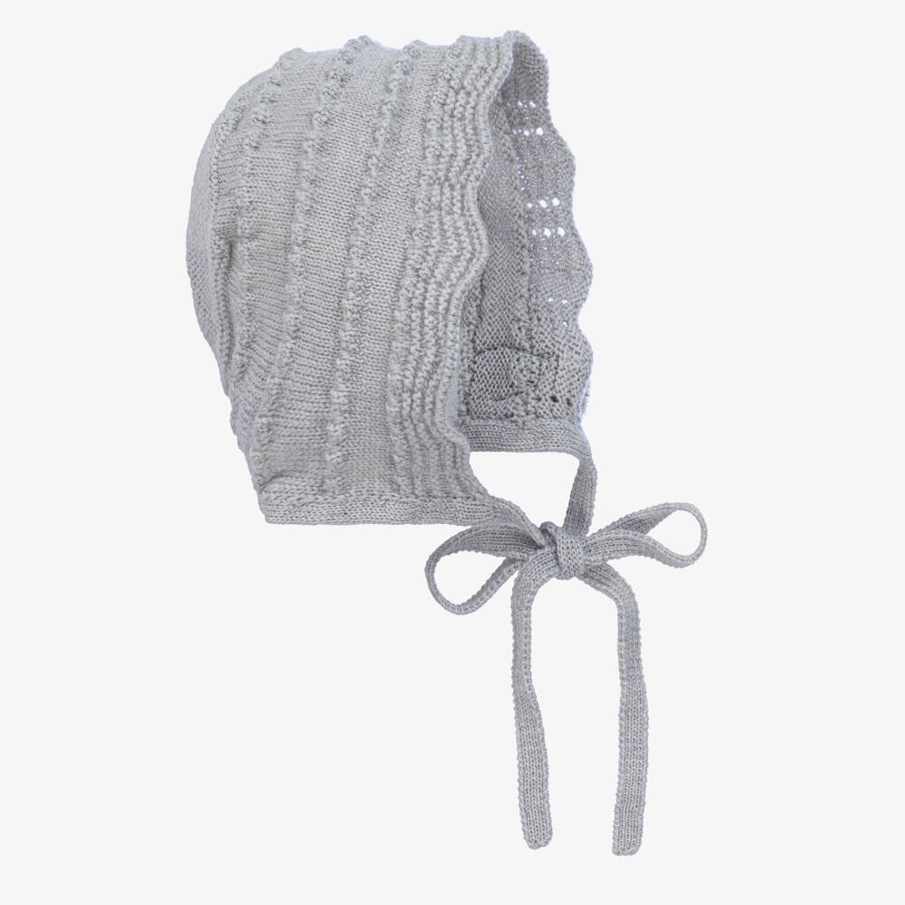Grey Merino Wool Knitted Baby Bonnet