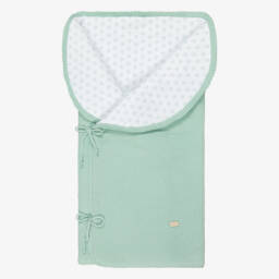 Pink nest for baby girls by Spanish brand Paz Rodríguez, made in a soft textured cotton blend with pretty ivory lace trims. Lightly padded for warmth, it is lined in soft plumeti cotton and has a mother-of-pearl logo charm on the front. Securing with ties on the front and a zip along the bottom, it has useful openings on the back so the nest can be used in the car seat or stroller. When opened it becomes an ideal surface for baby to play on.