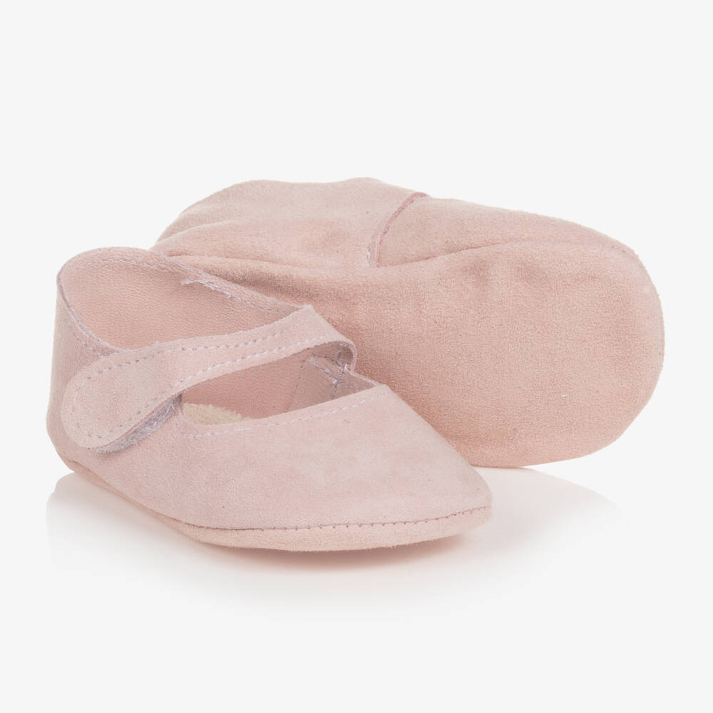 Sweet pink pre-walkers for baby girls by Paz Rodriguez, made from super soft suede. Traditional in style, these lovely shoes have a supple leather lining, a flexible suede outsole and a looped textile insole. They secure across the foot with a velcro fastening.