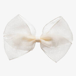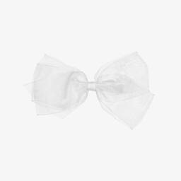 Girls beautiful white bow hair clip by Peach Ribbons. So lovely for a special occasion, it is handmade in sheer organza ribbon, with a metal lobster clip to secure to the hair.