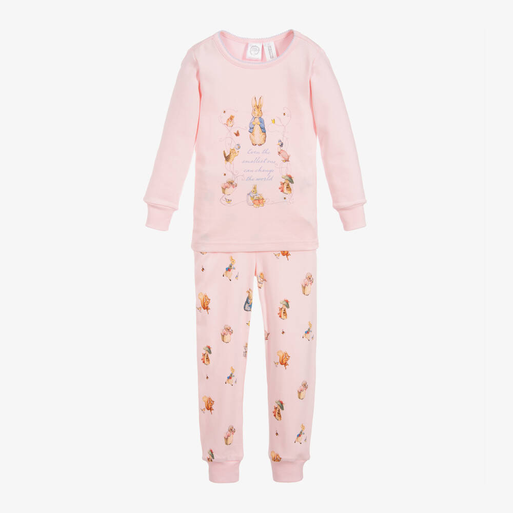 Sweet pink cotton pyjamas for girls from Peter Rabbit™ by Childrensalon. Made in super soft, comfortable jersey, they have a delightful print from the original illustrations by Beatrix Potter.