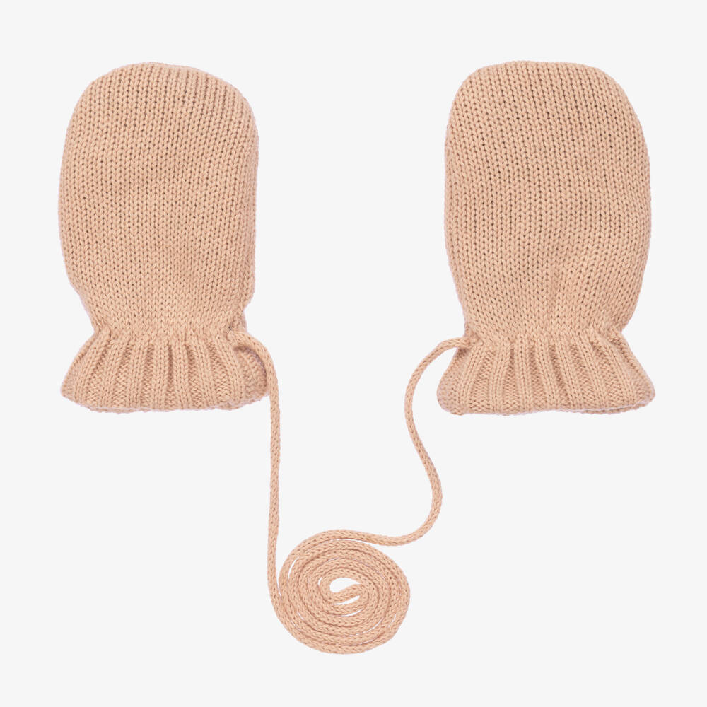 Pale pink mittens for girls by French brand Petit Bateau, knitted from soft, organic cotton yarn. These cosy mittens are lined in navy blue polar fleece for added warmth and joined on a knitted string to stop them from getting lost.