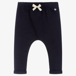 Green joggers for boys by Petit Bateau, made in soft mid-weight cotton jersey with a fleecy inside for cosiness. Casual and comfortable, they have useful side seam pockets and a navy blue drawstring waist for an adjustable fit. The brand's iconic sailing boat logo can be seen on the front for a signature finish.
