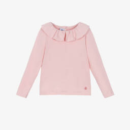 This pale ivory long-sleeve top by Petit Bateau adds a delightful touch to any girl's wardrobe. Made from soft organic cotton jersey, it features a charming ruffle collar with delicate picot trim, and a simple popper fastening at the back.