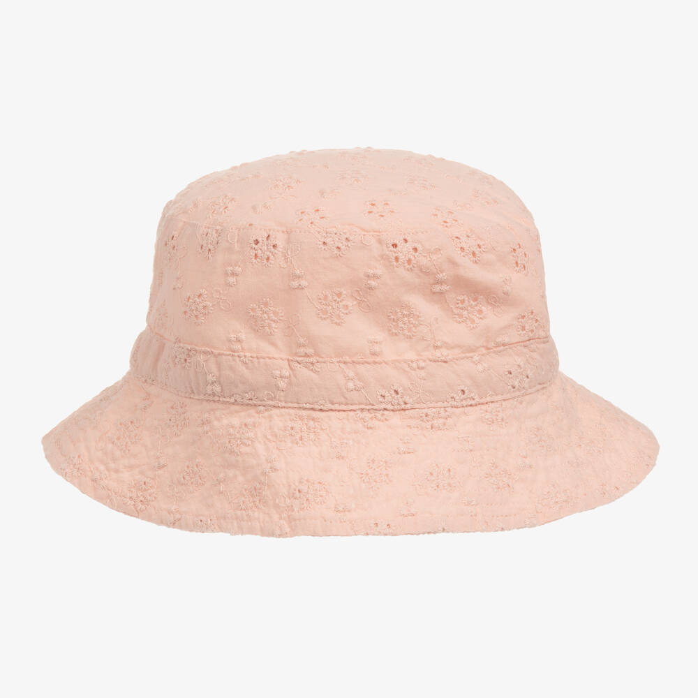 Girls Pink Broderie Anglaise Sun Hat