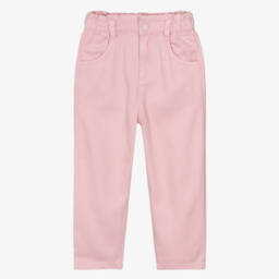 Girls Pink Twill Wide-Leg Trousers