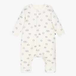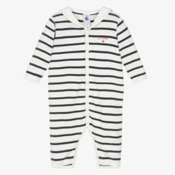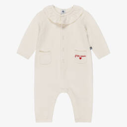 A white organic cotton romper for baby girls by Petit Bateau, with an adorable red hearts print. Warm and cosy, it is lightly padded and made from soft jersey, ideal for delicate skin. It has asymmetric popper fastenings on the front and between the legs for easy dressing.