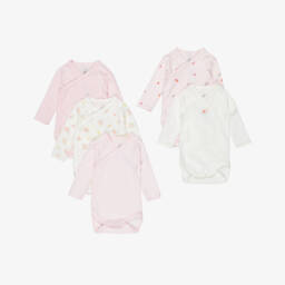 A pack of three white and blue bodyvests for baby boys and girls by French label, Petit Bateau. Made in beautifully soft organic cotton jersey, these comfortable babysuits have envelope necklines and easy-fastening poppers between the legs. One is plain white, one features the brand's Milleraies stripes and one has a lovely Paris-themed print in red and navy blue.