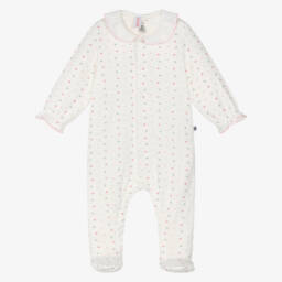 From Petit Bateau for boys and girls, a super soft white cotton babygrow. This adorable piece is printed with blue Paris landmarks and bright red slogans to catch the eye. It fastens with easy-to-use poppers for fuss-free dressing.