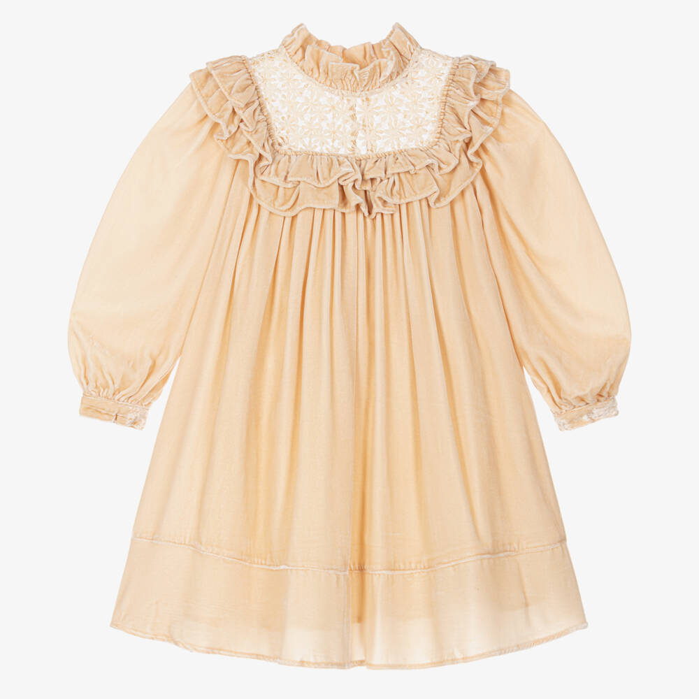 Girls Golden Beige Velvet Dress
