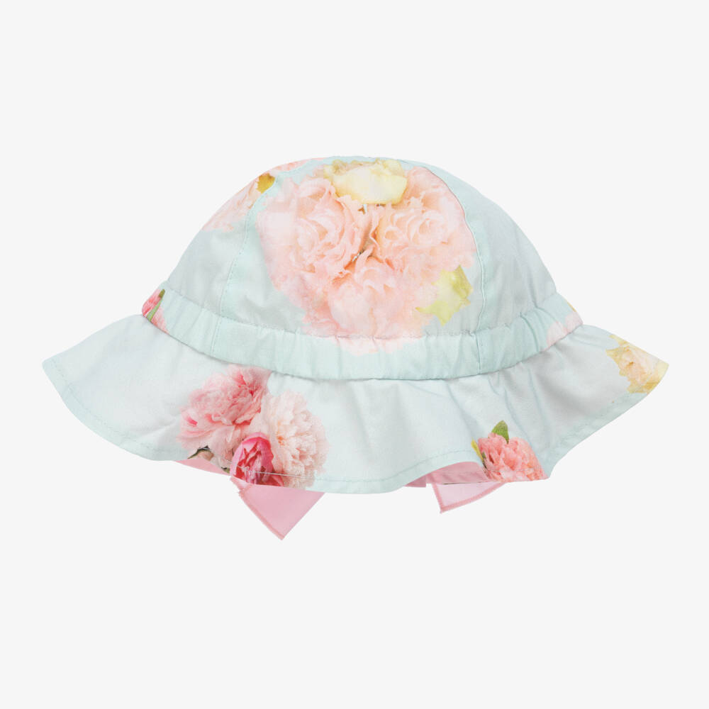 Girls Blue Cotton Floral Sun Hat