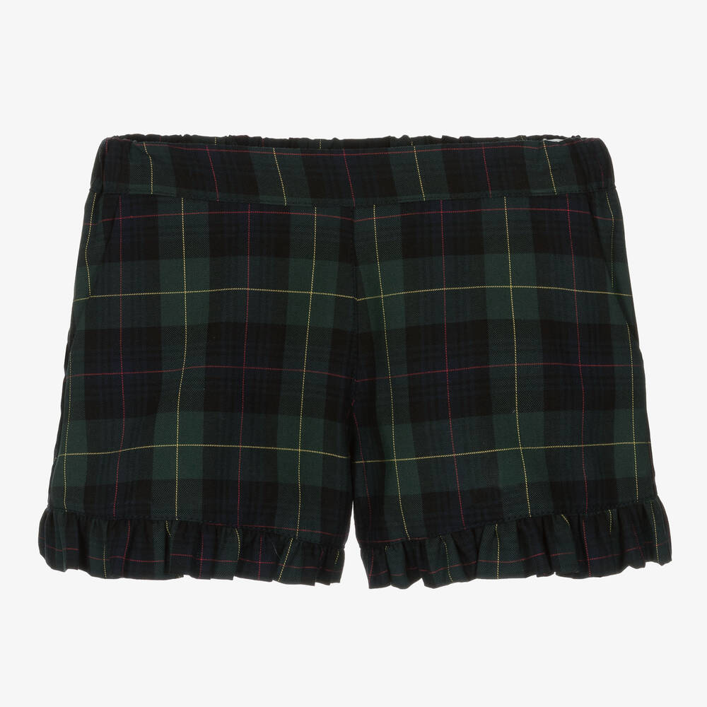 Girls Green Cotton Tartan Shorts