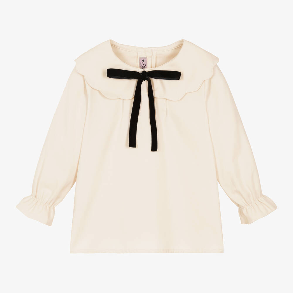 Girls Ivory Cotton Bow Collar Blouse