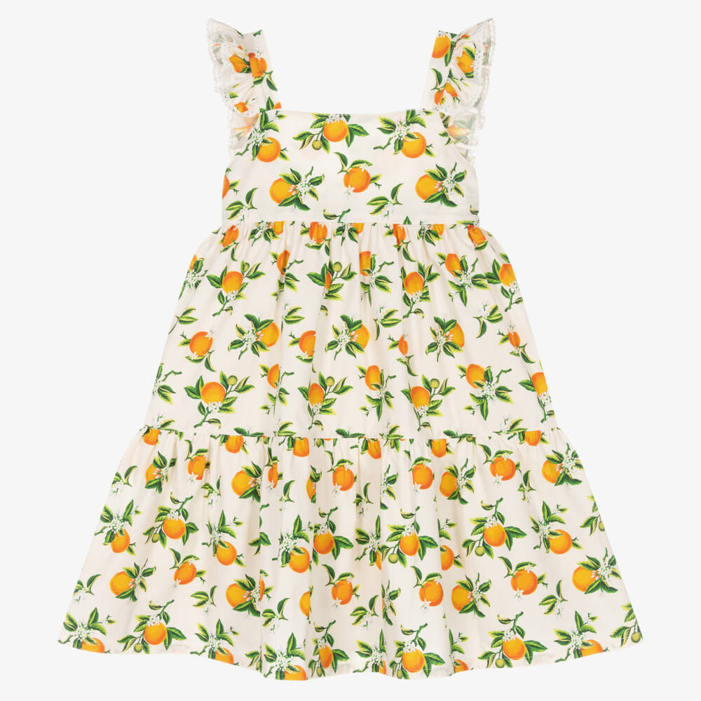 Girls Ivory & Orange Cotton Dress