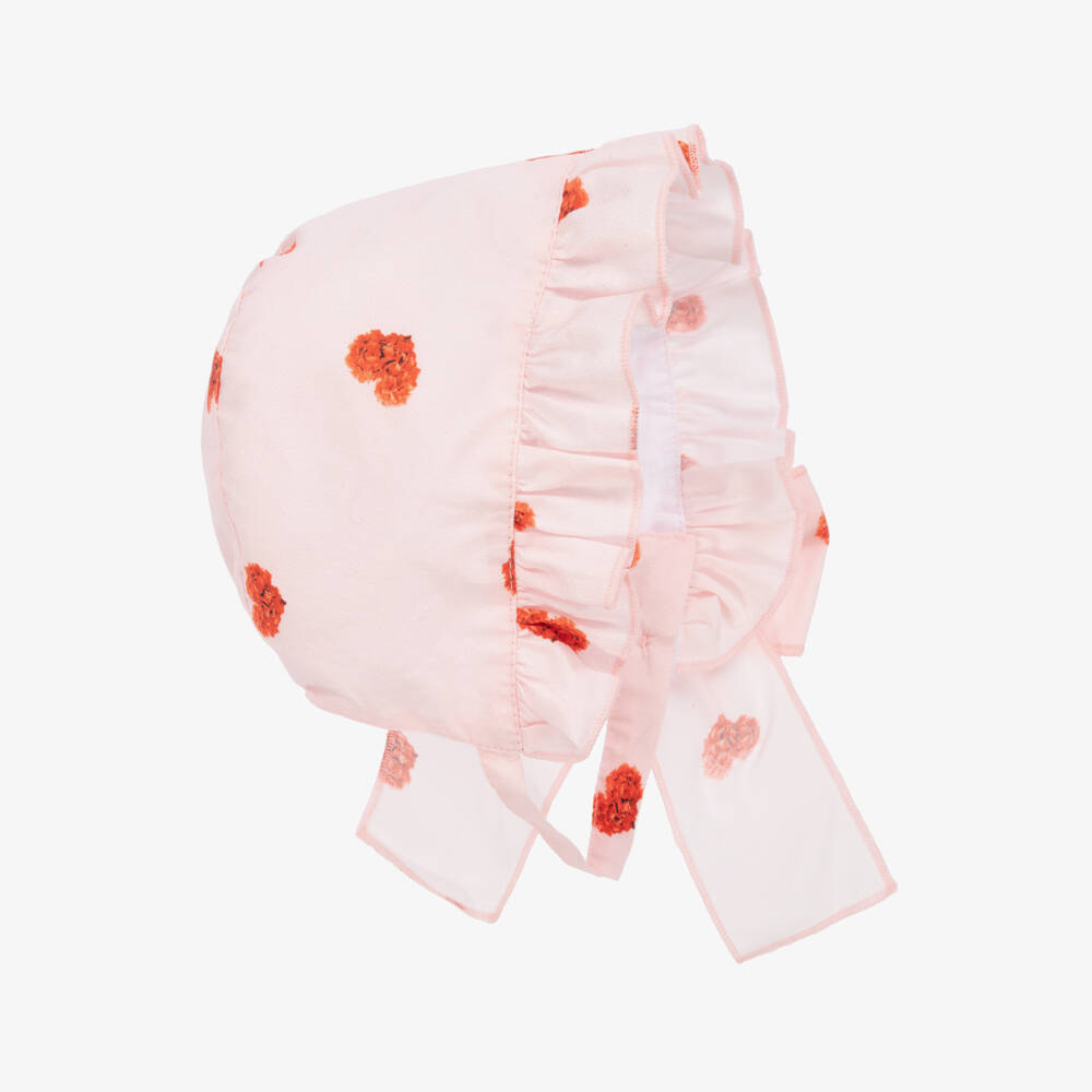 Girls Pink Heart Print Cotton Bonnet