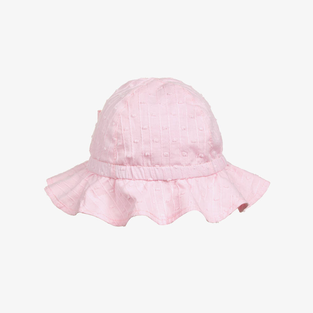 From Phi Clothing for girls, a charming pink sun hat with delicate plumeti dots and a pretty bow. Made in lightweight cotton poplin and with a wide brim to shield precious eyes from the sun, this sweet hat is ideal for bright days.