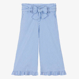 Girls pink and red gingham check trousers by Phi Clothing, with a chic wide leg fit. Designed with comfort and style in mind, they are made from soft cotton-blend seersucker with an elasticated paperbag waist for ease. A detachable tie belt, practical pockets and pretty ruffle cuffs complete this delightful style.