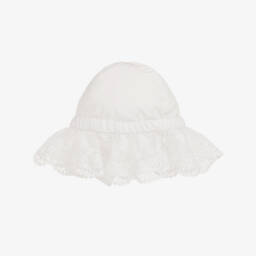 A blue denim sun hat for little girls by Phi Clothing, woven with silver thread for a lovely sparkle. Lined in lightweight voile, this sweet hat is gently elasticated for comfort and styled with a wide brim. A decorative bow on the back adds a pretty finishing touch.