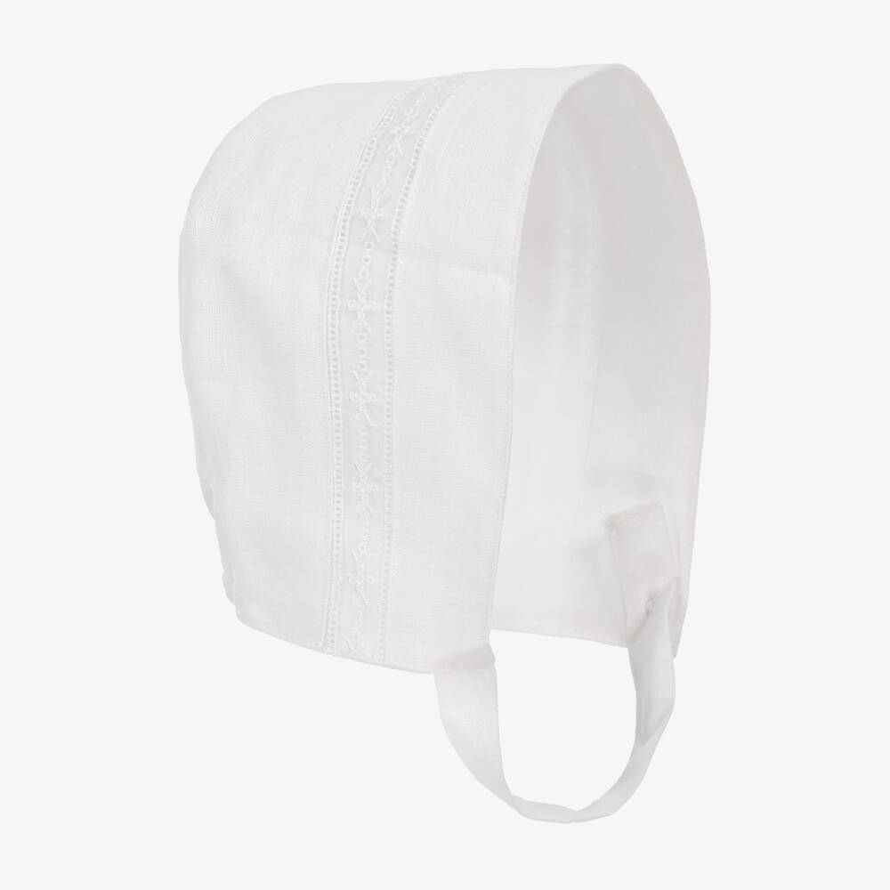 Girls White Linen Bonnet