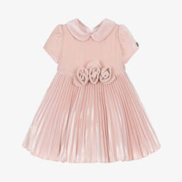 This stylish, warm ivory coat for girls by Piccola Speranza, is mid-weight with a soft felted feel. A classic design with a rounded collar and a gentle A-line silhouette, it has pretty floral appliqués with sparkling diamanté centres decorating the patch pockets and cuffs. It is lined in sumptuous satin and fastens with covered buttons to complete the smart look.