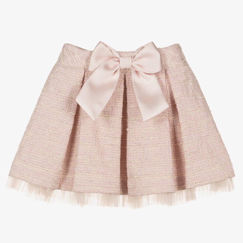 Girls Pink Tweed Bow Skirt