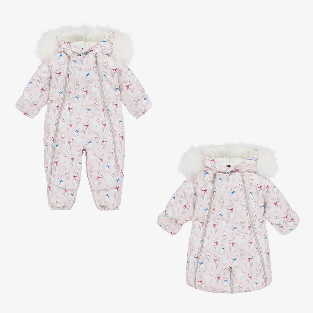 Baby Girls Pink & White Bunny Snowsuit