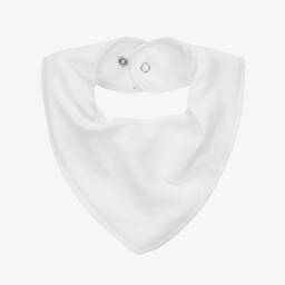 An ivory bib for baby boys and girls by Pippi, made from a soft organic cotton jersey blend. This practical layer has a gathered neckline for a bandana-style effect and fastens easily on the back with adjustable poppers.