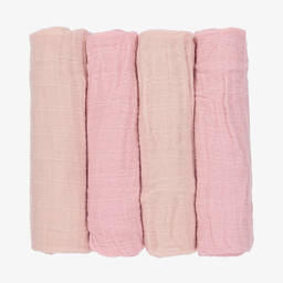 A four-pack of pink muslin cloths for baby girls by Pippi, made from delicate and breathable organic cotton. They are practical for use as a swaddle blanket to keep your little one wrapped up, or as a burp cloth to clean up spillages.