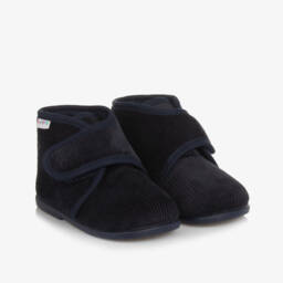 Grey slippers for boys by Spanish brand Pisamonas. The uppers are knitted in a cable design and are lined in soft fleece for extra warmth. These comfortable and cosy slippers have non-slip rubber outer soles and simply slip on.