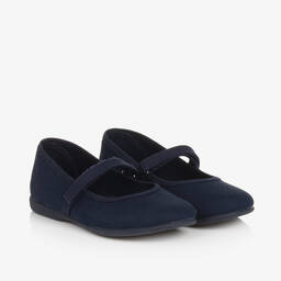 Navy blue bar shoes for girls by Spanish brand Pisamonas. Made in soft canvas, they fasten simply with a velcro strap across the foot. These pretty, casual shoes have a non-slip rubber sole in the same colour as the shoe making them even easier to combine with all outfits.