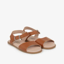 Tan brown leather Menorcan sandals for boys and girls by Pisamonas offer enduring style and comfort. Featuring a classic open-toe design, they are made in soft, supple leather, with an adjustable, Velcro strap to ensure a secure fit. They have a sturdy, non-slip sole.