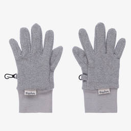 Girls and boys grey gloves by Playshoes. Soft and cosy, they are made in breathable, anti-pilling fleece with comfortable cotton jersey cuffs. They have handy clips to keep them together when not in use.