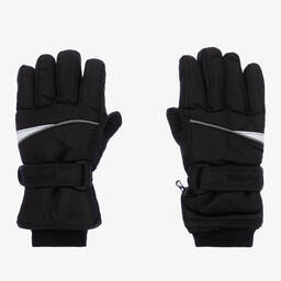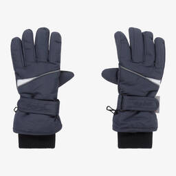 Navy blue ski gloves for boys and girls by Playshoes, with reflective trims. Warm but lightweight with 3M Thinsulate™ insulation, they are waterproof and breathable. Lined in soft, warm fleece, they have comfortable ribbed cuff, adjustable velcro straps and hard-wearing, black slip-resistant palms.