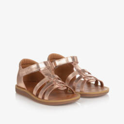 Great for an eye-catching look, these shiny gold sandals for girls are by Pom d'Api. Made from smooth leather with a soft leather lining and insole, they have non-slip rubber outsoles for a good grip. In a cool cage style, they fasten with buckles around the ankle.