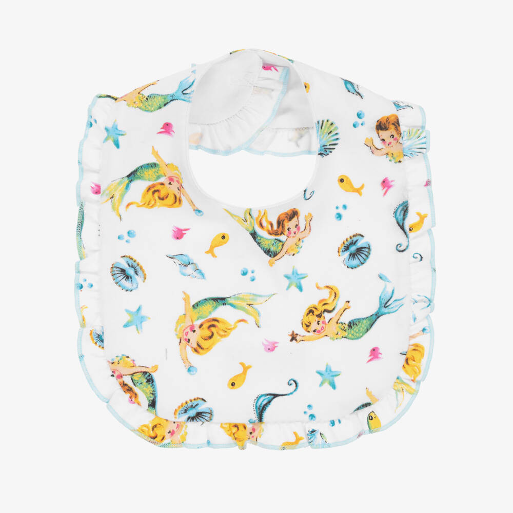 Baby Girls White Cotton Mermaid Bib