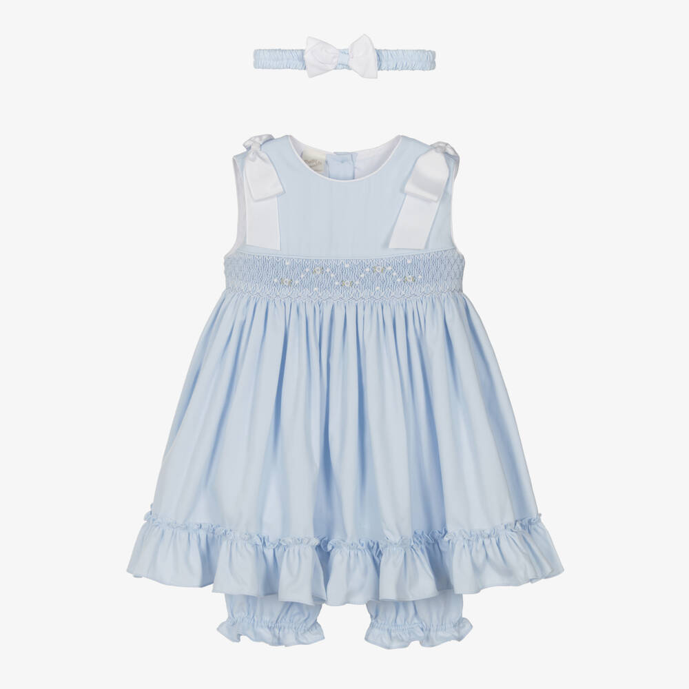 Girls Light Blue Smocked Cotton Dress Set