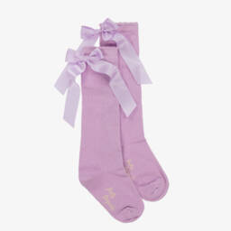 Girls pale blue knee-high socks from Pretty Originals, made in a soft and stretchy cotton-rich blend. They are decorated with pretty satin bows by the delicately scalloped cuffs.