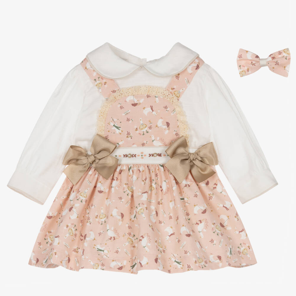 Girls Pink Cotton Ducks Pinafore Dress Set