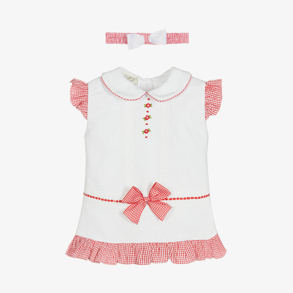 Girls White & Red Gingham Dress Set
