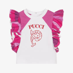 Ideal for stylish resort wear, this PUCCI sun visor for girls features the Italian label's distinctive Fontane print in shades of pink, orange and red. Trimmed with woven raffia, it fastens with velcro at the back, finished with a bold, decorative bow.