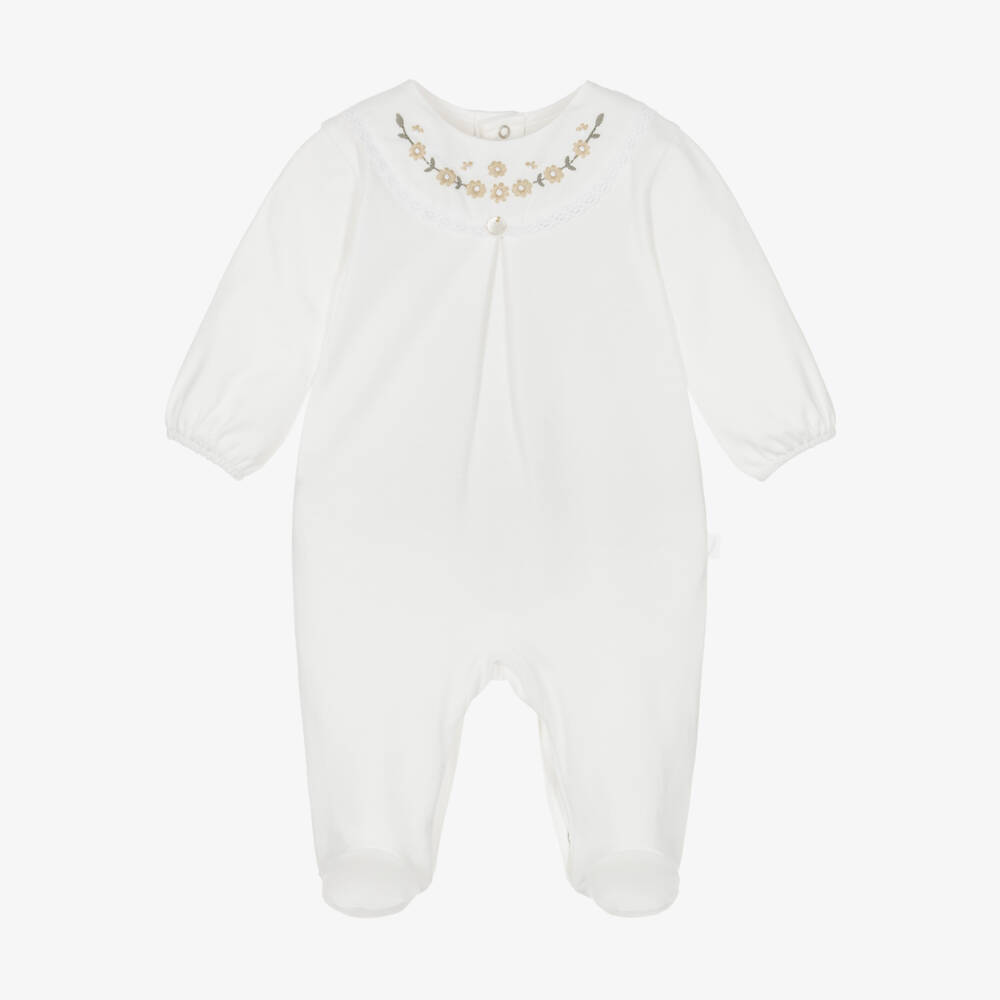 Girls Ivory Embroidered Cotton Babygrow