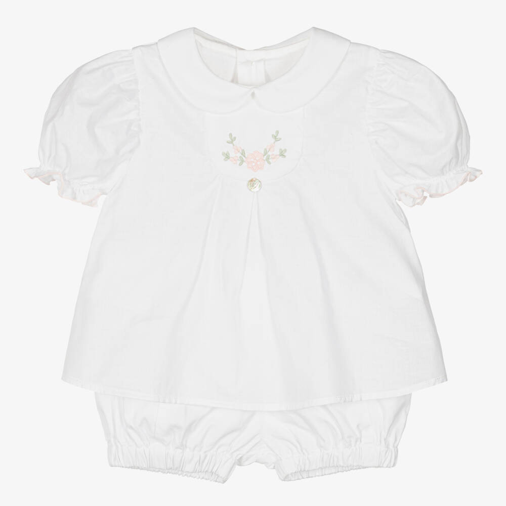 Girls White Cotton Shorts Set
