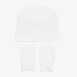 Delightfully soft against delicate skin, this ivory cotton hat and mittens set for baby boys and girls is from Pureté Du... Bébé. The hat is made in double-layer jersey for extra cosiness and the scratch mittens have a gently elasticated cuff for a comfortable fit. Both pieces are trimmed with delicate picot embroidery for a sweet finish.