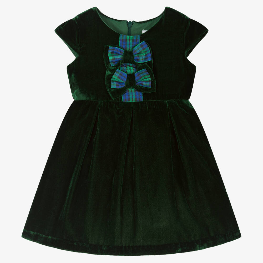 Baby Girls Green Velvet Tartan Bow Dress