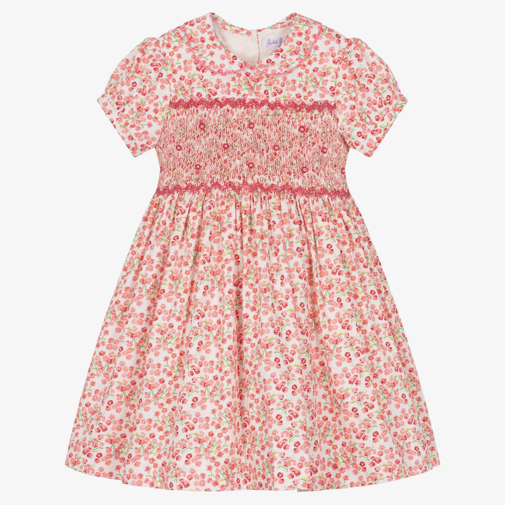 Girls Pink & White Floral Hand-Smocked Dress