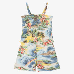 This casual navy blue cotton shorts set for baby boys is by Ralph Lauren. Made in soft, comfortable cotton jersey, the top has a white collar, with matching, sporty stripes down the sleeves and a vintage-style logo appliqué on the chest. The coordinating shorts have an elasticated waist and a varsity-style logo print. Easy to wear, both pieces simply pull on.