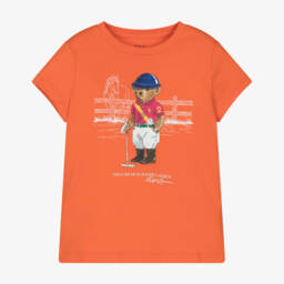 Boys turquoise blue crew neck T-shirt by Ralph Lauren, in soft cotton jersey. Styled with short sleeves, this casual tee has a Big Pony embroidered on the chest in white. There is also a '3' patch on the sleeve, representing a polo team's strongest player.