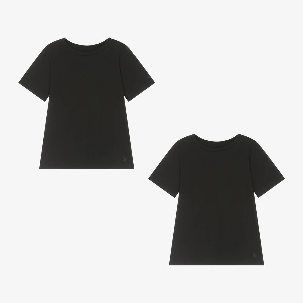 Pack of two black T-shirts by Ralph Lauren, made in soft and comfortable cotton jersey. Designed with short sleeves and lightly ribbed crew necks, these practical tees can be worn as vests or additional layers for warmth. For a discreet designer detail, the brand's signature pony logo can be seen on the hem in tonal embroidery.