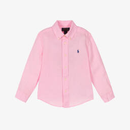 Casual checked Mini-me shirt for boys in shades of blue by American brand Ralph Lauren. Made in lightweight, cotton poplin, it has the designer's instantly recognisable, signature pony logo embroidered on the front in navy blue. There are button fastenings on the collar, front and cuffs of the long sleeves.