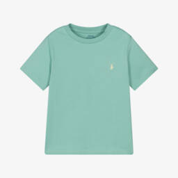 Powder blue T-shirt for boys by Ralph Lauren, made in soft cotton jersey. This casual tee has a pale pink signature Pony logo embroidered on the chest for a distinctive finish.
